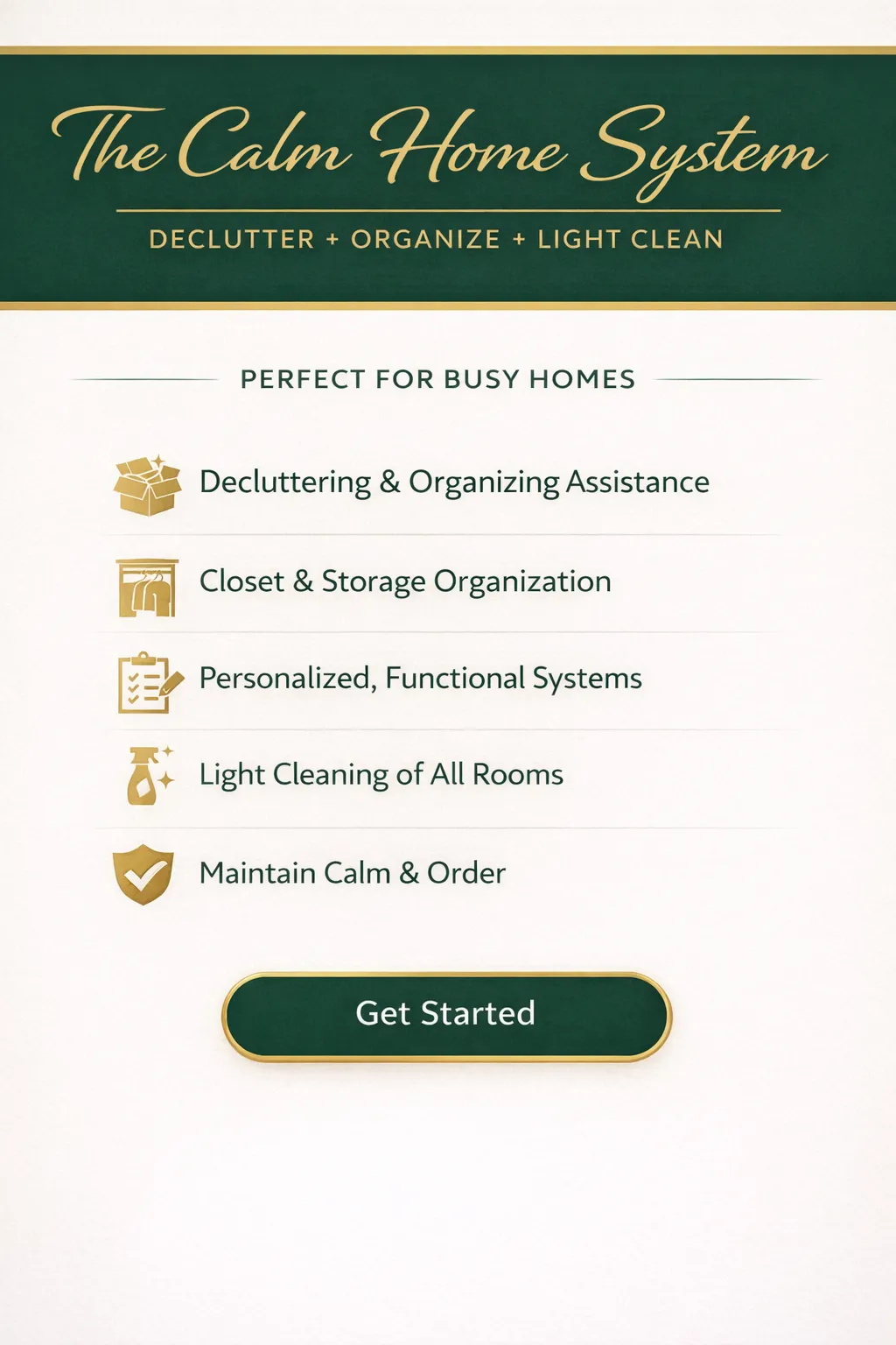 We provide personalized decluttering, organizing, packing/unpacking, cleaning move in/ out services designed to bring calm, order, and functionality back into your home or office Whether you’re overwhelmed by clutter, preparing for a move, downsizing, or simply need help maintaining a clean and organized space, we offer practical, judgment-free support every step of the way.