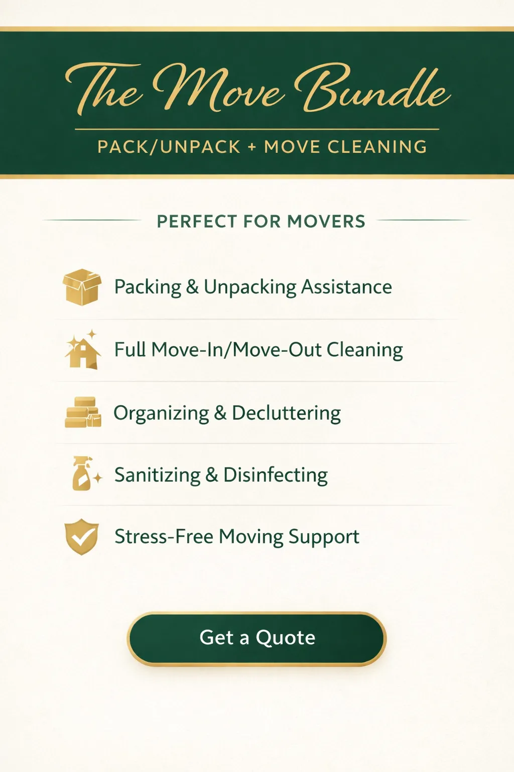 We’re built for the moments when life gets busy: the clutter builds up, the move comes fast, or the mess is just bigger than your time. Whether you need a deep clean, a move-out clean, or someone to help you declutter and organize, we bring a practical plan and real results.